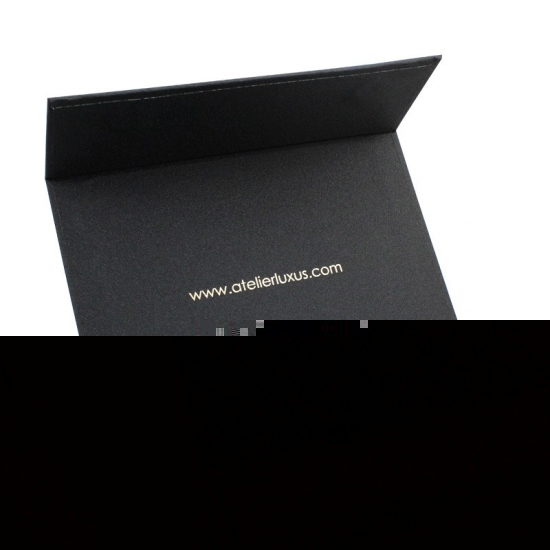 This is a black magnetic flap box with EVA foam padding which made byfabric pattern specialty paper+ 1200g grey board,and the logo inside and ouside are gold foil stamping.