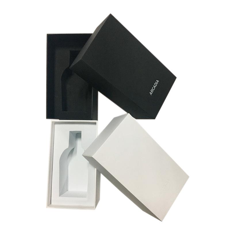 This box has 2 different color with black and white. These 2 different pattern is the same size, 9.2*16.2*7.6cm large. With EVA insert. Made up by 157gsm coated art paper and 2mm thick double side grey board and black cardboard.