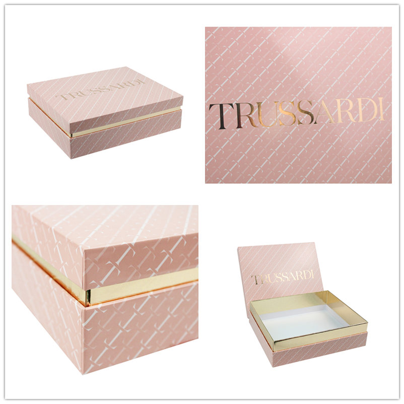 box material: 157gsm art paper mounted with 1200gsm rigid cardboard, with gold liner on the shoulder.