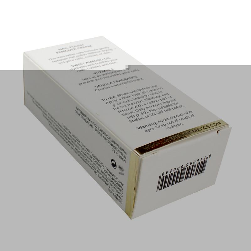 This is a 30 ml machine made soft card box which made by C2S art paper,outside of box full of text and logo printing include instruction and barcode,inside blank white.